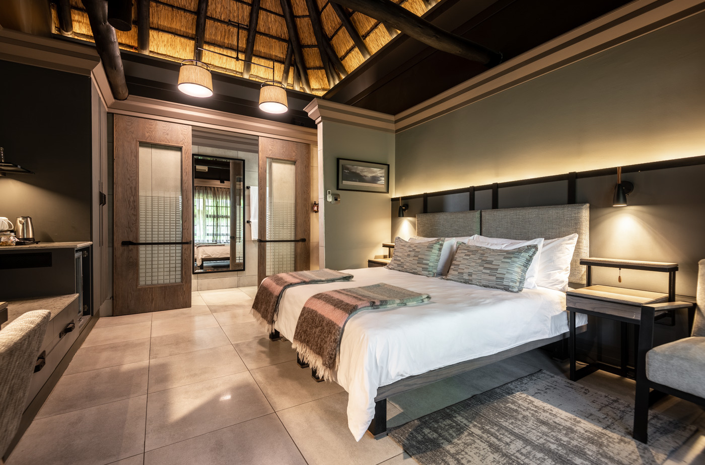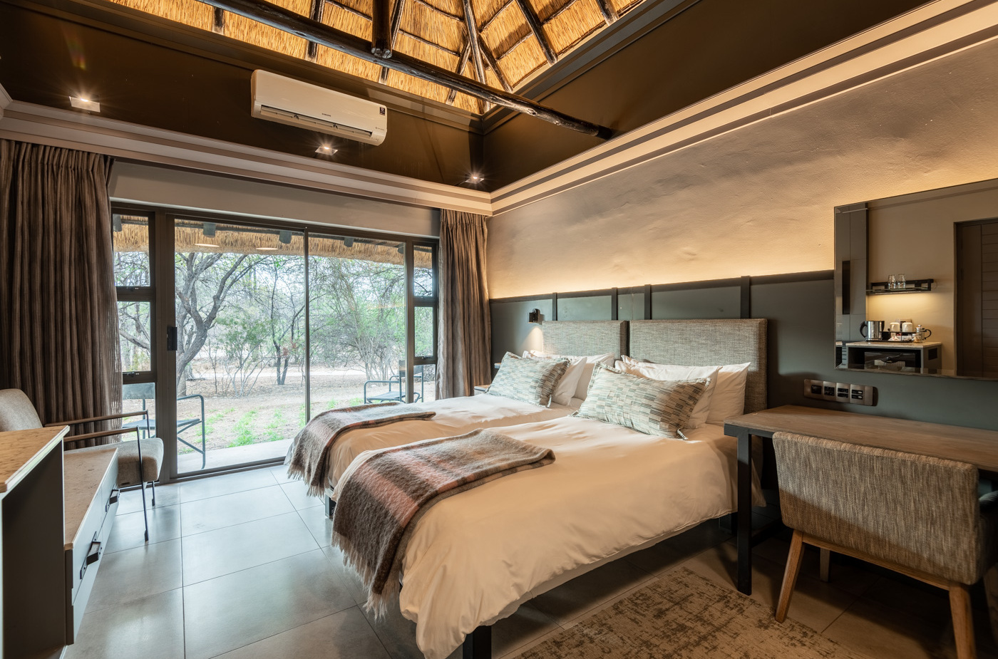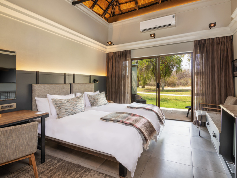 Where luxury meets the wild. Mokuti Etosha's rooms are a balanced haven for safari enthusiasts and relaxation seekers alike. Unwind in spacious suites and let the spirit of the bush lull you to sleep. Step outside to be greeted by breathtaking views of the surrounding wilderness. Whether you are sipping your morning coffee, enjoying a sundowner or simply taking in the tranquillity, you'll feel a deep connection to nature. Your Etosha oasis awaits.
