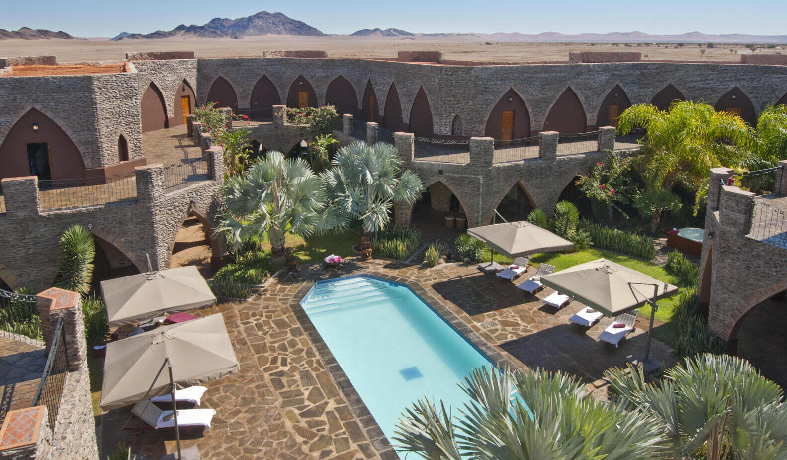 Rising like a mirage from the ochre sands of the Namib, Le Mirage Sossusvlei defies expectation. This architectural wonder evocative of an ancient desert fortress is a sanctuary of serenity and luxury just 21 kilometers from the gates of Sossusvlei.Within its imposing walls lies a lush courtyard oasis, complete with vibrant greenery, a shimmering pool, and lavishly designed interiors. Every detail, from the castle-like arches to the calming ambiance of the Mystique Spa, invites guests into a world where the surreal becomes real, and every experience is touched by magic. With sweeping desert views and refined comfort throughout, Le Mirage offers a stay that’s as extraordinary as its setting.